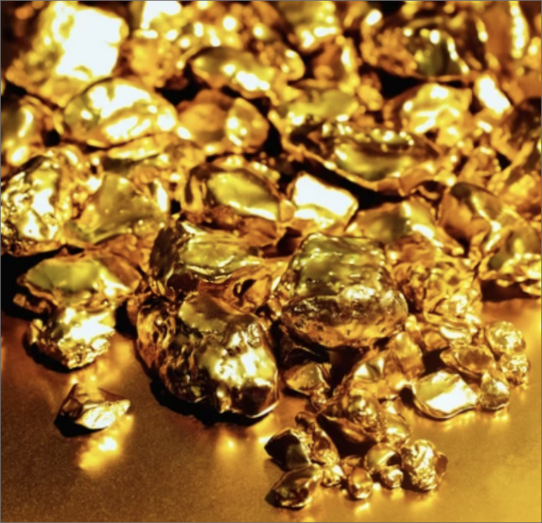 - Yellow, bright, relatively soft, solid metal at room temperature.